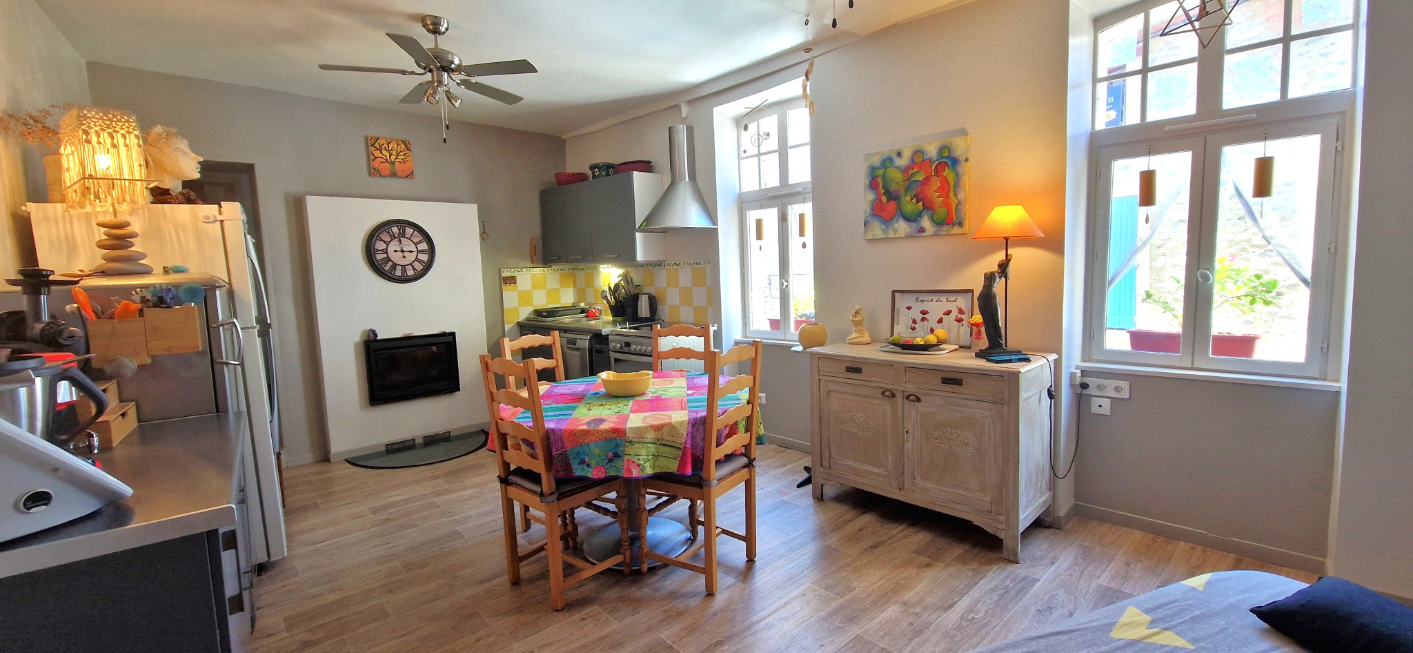 Beaucoup de charme pour cette maison de village rénovée sur 1 face ensoleillée exposition Ouest composée d’une buanderie / atelier, d’un séjour avec cuisine ouverte, d’un petit salon ou bureau, de 2 chambres et d’une salle d’eau.