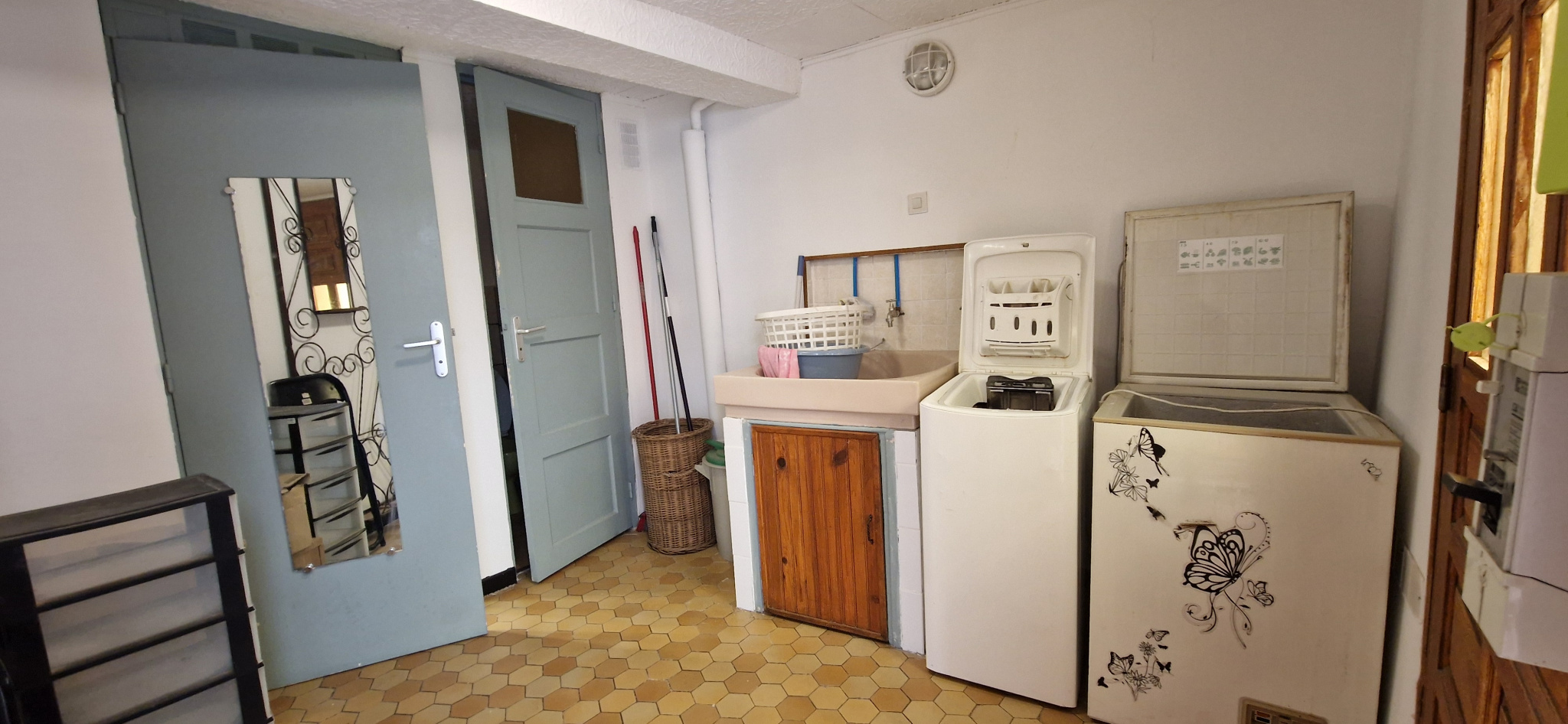 Au rez-de-chaussée 1 entrée avec coin buanderie, salle d’eau rénovée et WC indépendant puis dans les étages une cuisine équipée / séjour , un salon et une belle chambre au 3 ème niveau